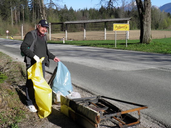 Razdelili smo več kot 80 vreč in rokavic (donacija Komunale Kranj in Občine Naklo) ter začeli s čistilno akcijo na gozdnih in travnatih površinah ob lokalni cesti, na gozdnih jasah, divjih odlagališčih in obrežjih potokov. Spremljala sta nas dve vozili z velikima prikolicama in traktor s prikolico, na katere smo sproti odlagali vreče s smetmi in kosovne odpadke. S pločevinkami, plastenkami, polivinilom, steklenicami, oblačili, obutvijo, papirjem, … in drugo odpadno embalažo smo napolnili več kot 70 vreč, ki so bile ob zaključku odpeljane na zbirni center na Polico. Letos smo z veseljem ugotovili, da je bilo nekaj manj odpadkov, zlasti večjih kosovnih (hladilniki, televizorji, žimnice, …), nekaj več pa je bilo gradbenih odpadkov.